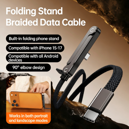 High Speed 240W Foldable Phone Stand Fast Charging Cable – 90° Gaming Friendly Design